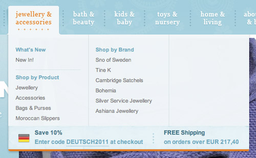 One common design problem with dropdown menus is that they often contain a lot of items. Instead of presenting all of its items in a long single column, Bohemia Design uses a multi-column dropdown. This approach not only looks great, but provides an opportunity to group the links and highlight the most important ones.