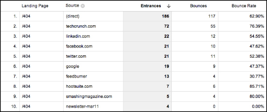 This image shows sources of traffic that are leading visitors to the 404 page.