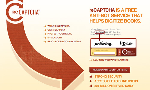 The reCAPTCHA project aims to stop spam and help digitize books.