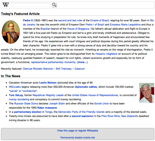 Figure 37: Wikipedia makes use of the jQuery library within its mobile-orientated website.