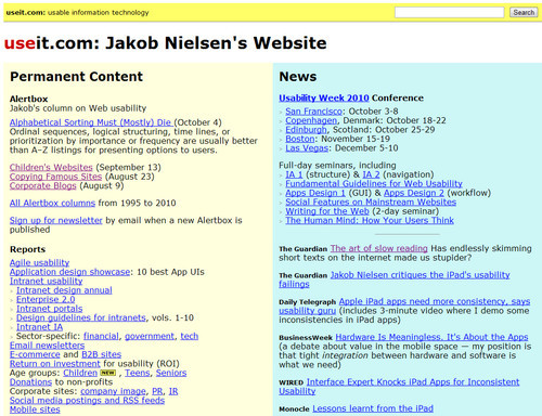 Highly-respected usability researcher and ground-breaking author, Jakob Nielsen, writes a column named Alertbox on the topic of usability and UX.
